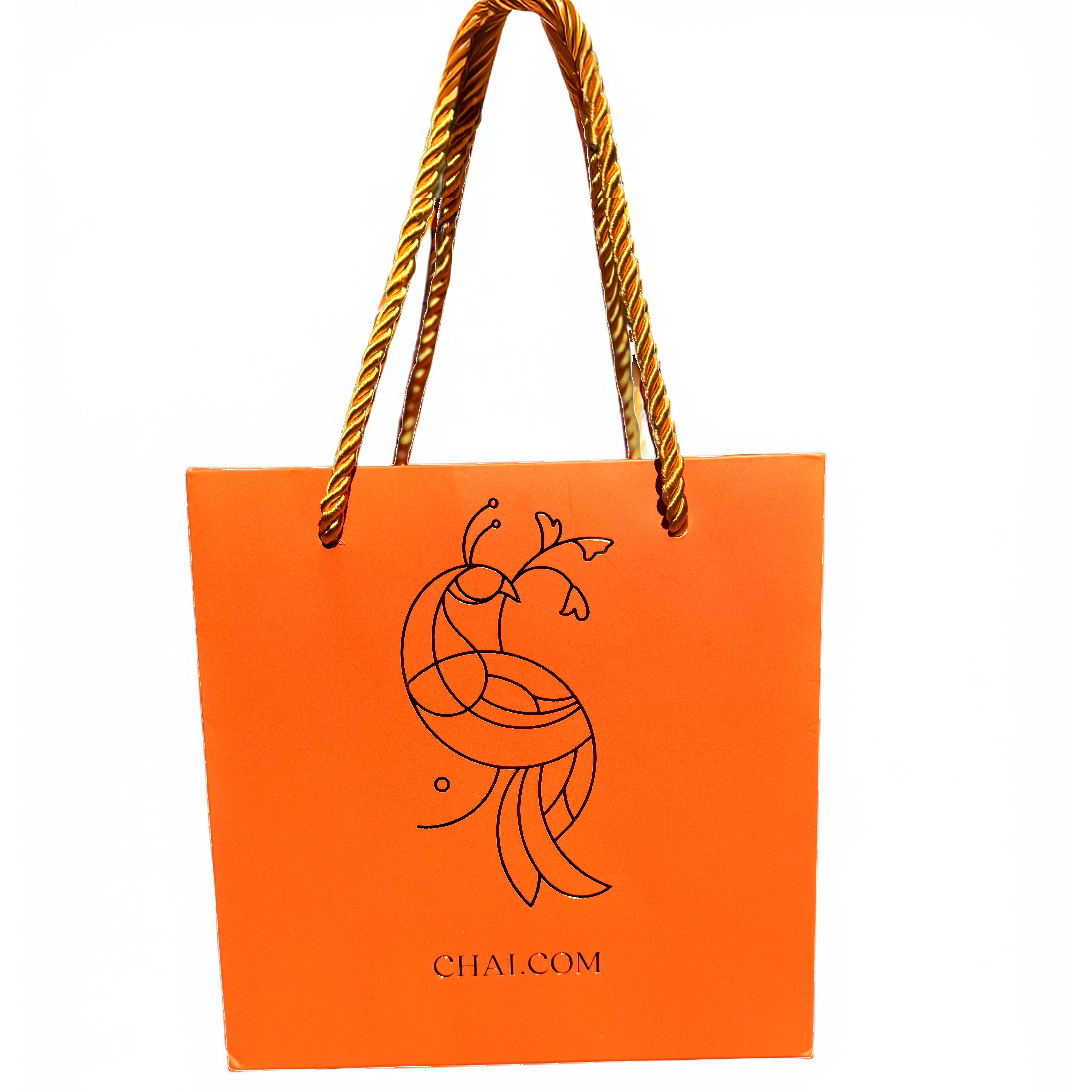 Wrap your gift in the warmth and beauty of CHAI.COM. Our Signature Gift Bag is crafted from thick, premium card stock in our iconic orange hue, adorned with the elegant CHAI.COM peacock—symbolizing heritage, celebration, and togetherness.
